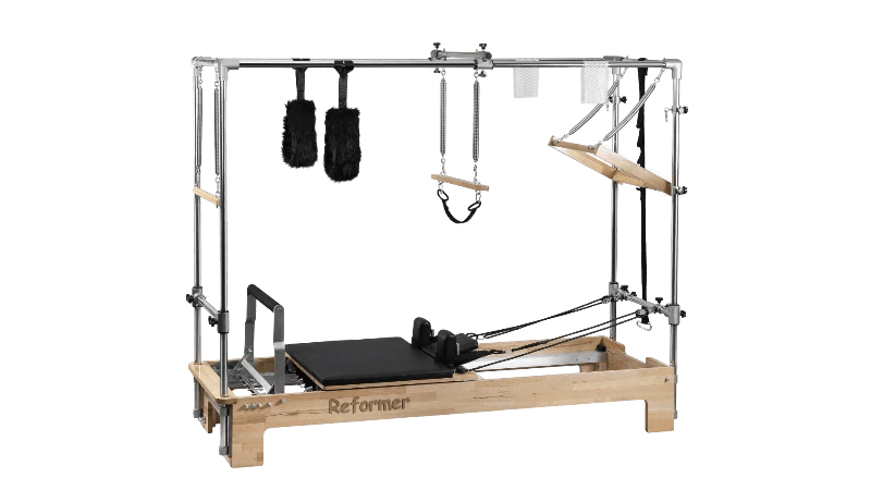 ریفورمر با تاور، یکی از دستگاههای پرکاربرد پیلاتس است که ترکیبی از ریفورمر و وال یونیت میباشد. این دستگاه برای افراد مبتدی و پیشرفته مناسب است و به بهبود وضعیت بدن، انعطافپذیری، قدرت عضلات مرکزی و کاهش وزن کمک میکند.